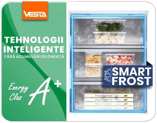 Frigiderul Vesta RF-B185STNF/X este combinația perfectă de stil și funcționalitate. Cu sistemul No Frost, acesta previne formarea gheții și menține temperatura și umiditatea optime în interiorul camerei. Compartimentele spațioase permit depozitarea ușoară a produselor, iar designul său modern de culoare gri se integrează perfect în orice bucătărie. Modelul este echipat cu un sistem energetic eficient, care ajută la reducerea consumului de energie electrică, fiind o alegere excelentă pentru utilizarea pe termen lung. Vesta RF-B185STNF/X este un frigider fiabil și elegant, care îți va oferi confort și conveniență în bucătărie.