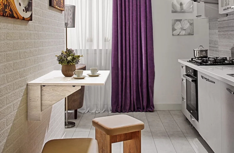 Masa suspendată Ambianta Tina este alegerea ideală pentru cei care apreciază posibilitatea de a ajusta înălțimea mobilierului în funcție de nevoile lor. Această masă este perfectă atât pentru amenajarea unui spațiu de lucru într-o cameră, cât și ca masă de luat masa în bucătărie. Modelul Ambianta Tina ajută la utilizarea eficientă a spațiului: în poziția pliată, se transformă într-o poliță pentru obiecte mici. Masa este fabricată din materiale durabile, iar culoarea lemnului îi conferă un stil modern și minimalist. Această masă suspendată compactă este perfectă pentru încăperile mici, fără a ocupa mult spațiu. În forma pliată, poate fi utilizată ca o poliță suplimentară. O soluție ideală pentru o bucătărie mică.
