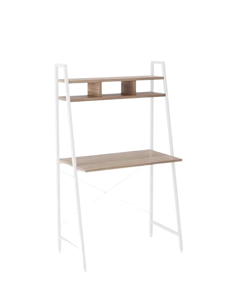 NARVIK B-2 este o masă cu un blat dreptunghiular și două rafturi din plăci de mobilier laminate în culoarea stejar Sonoma. Suportul metalic stabil este vopsit în alb.