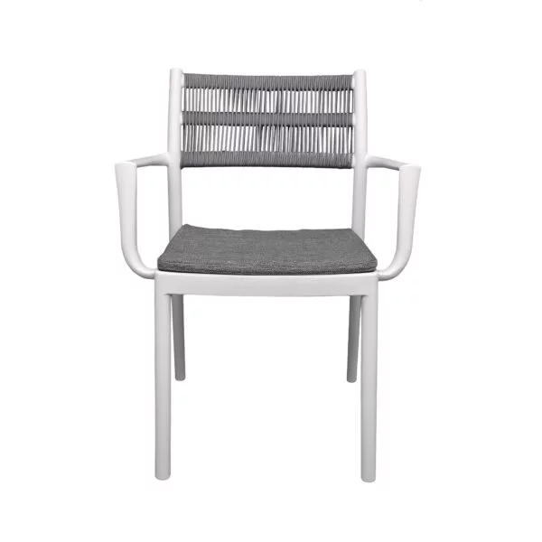 Scaunul Arif este o opțiune ideală pentru orice spațiu datorită combinației sale de confort, durabilitate și practicitate. Corpul său este fabricat din polipropilenă solidă, rezistentă la intemperii, asigurând o durabilitate pe termen lung și fiind potrivit pentru utilizare în exterior. Spătarul este echipat cu stofă hidrofobă, oferind un plus de confort și ușurință în întreținere. Pernuța din stofă pe perimetrul șezutului adaugă un nivel suplimentar de confort și stil designului. Scaunul Arif poate fi stivuit pentru a economisi spațiu în timpul depozitării sau când nu este folosit.