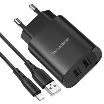 Încărcător Borofone BN2 (EU) Wall Charger with Сable USB to Lightning Black