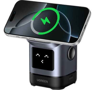 UGREEN 2-în-1 Magnetic Wireless 15W Grey soluție practică pentru o zonă de încărcare organizată și fără cabluri inutile.