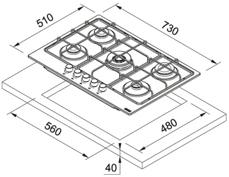 • Количество конфорок: 5
