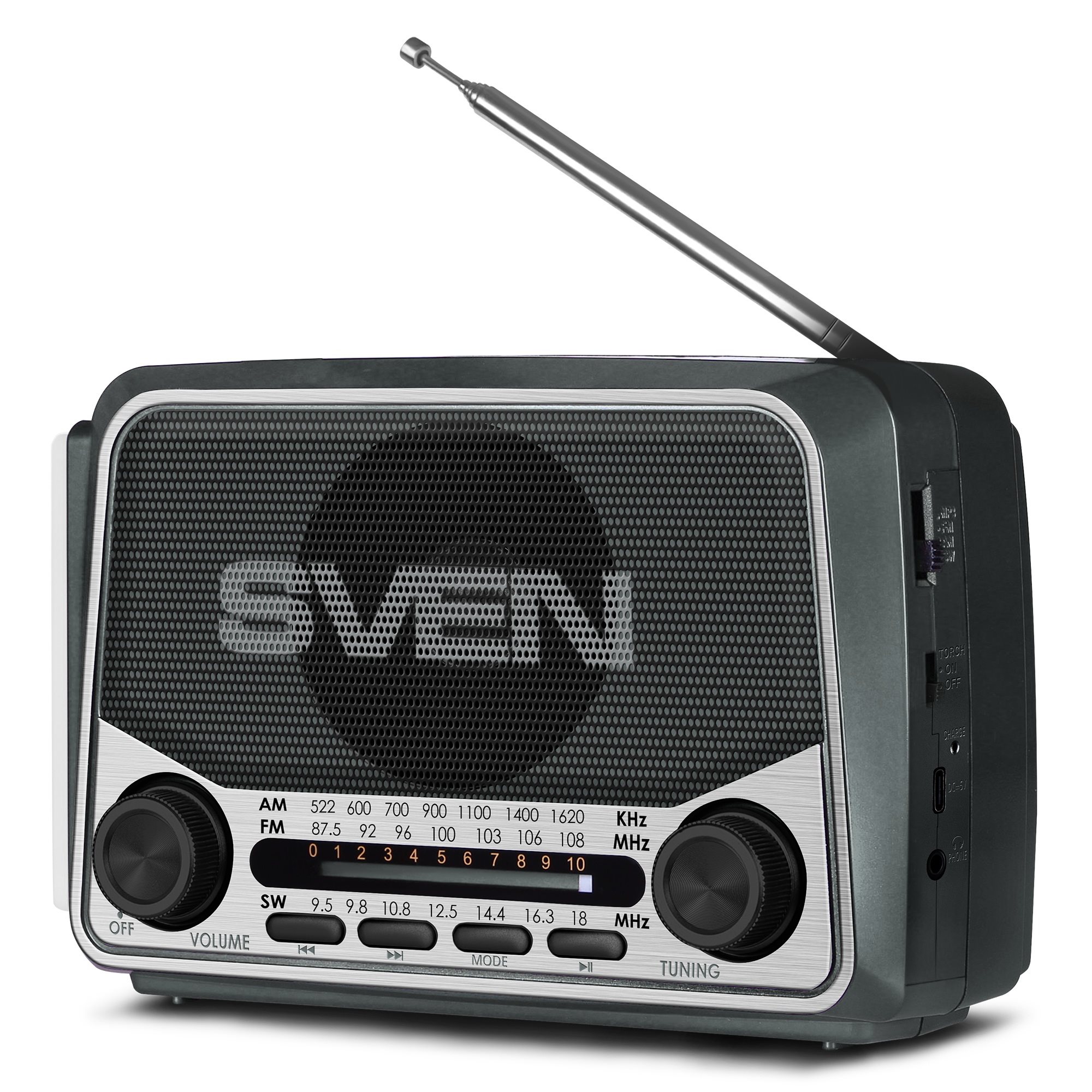 SVEN SRP‑150 Grey сочетает функциональность, мобильность и стильный внешний вид, обеспечивая комфортное прослушивание любимых передач и музыки.