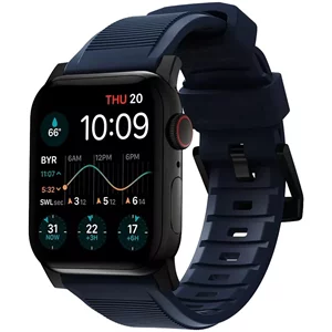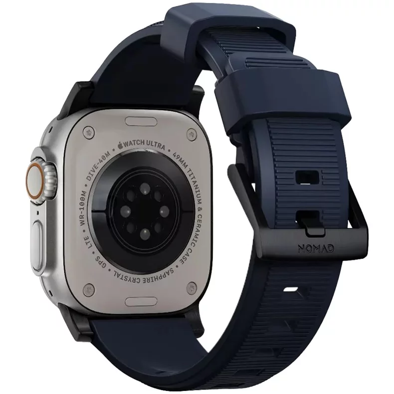 Ремешок Nomad Rugged Apple Watch V2 для моделей 42/44/45/49 мм в цвете Blue Black это идеальный выбор для активных пользователей, ценящих надежность и стиль. Изготовленный из прочных материалов, этот ремешок обеспечивает долговечность и защиту, что делает его идеальным для использования в условиях активного образа жизни.