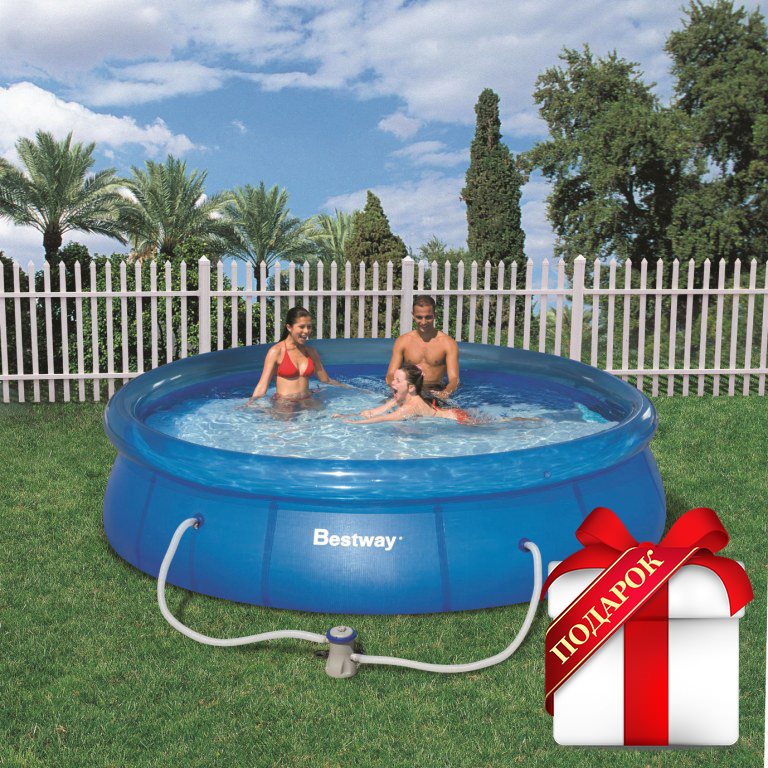 Надувной бассейн BestWay 57112 - это, пожалуй, один из самых недорогих бассейнов, который приобретается для семейного пользования. В нем легко умещаются несколько взрослых и ребятишек. Бассейн легко и быстро устанавливается без применения технических средств.